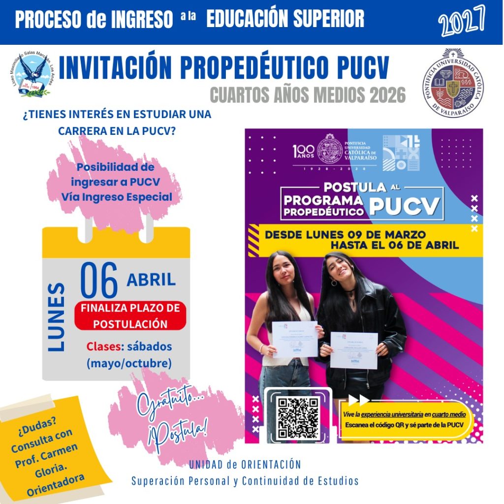 Uno de nuestros sellos institucionales es "Superación Personal y Continuidad de Estudios", nuestro compromiso es otorgarles a nuestros estudiantes la mayor información para que al finalizar su cuarto año medio, tomen una decisión vocacional informada que les lleve a concretar a cada uno su proyecto de vida. La Pontificia Universidad Católica de Valparaíso (PUCV) es [...]